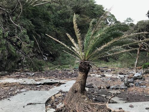 ↓↓↓「上」はこちら↓↓↓ 内袋観音に参拝を済ませた後は、再び海の方に目を向けてみた。 ここは、かつて真鶴水族館の建物があったあたりであろう。地盤に建物の基礎が痕跡として残されているのが見て取れる。 後ろを振り返れば、一対の石灯籠。 そう、ここは紛…