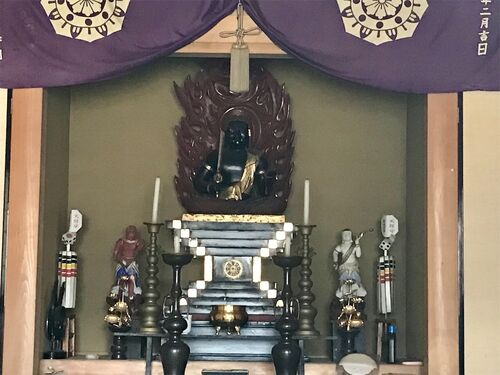 小田急線伊勢原駅前の県道61号線、通称「中央通り」を北に向かって進み、伊勢原小学校入り口の交差点を過ぎたところにこぢんまりとした不動堂があるのが見えてきます。 その入り口には見上げるようなトタン板の看板が掲げられ、そこには「火災防除 開運招…